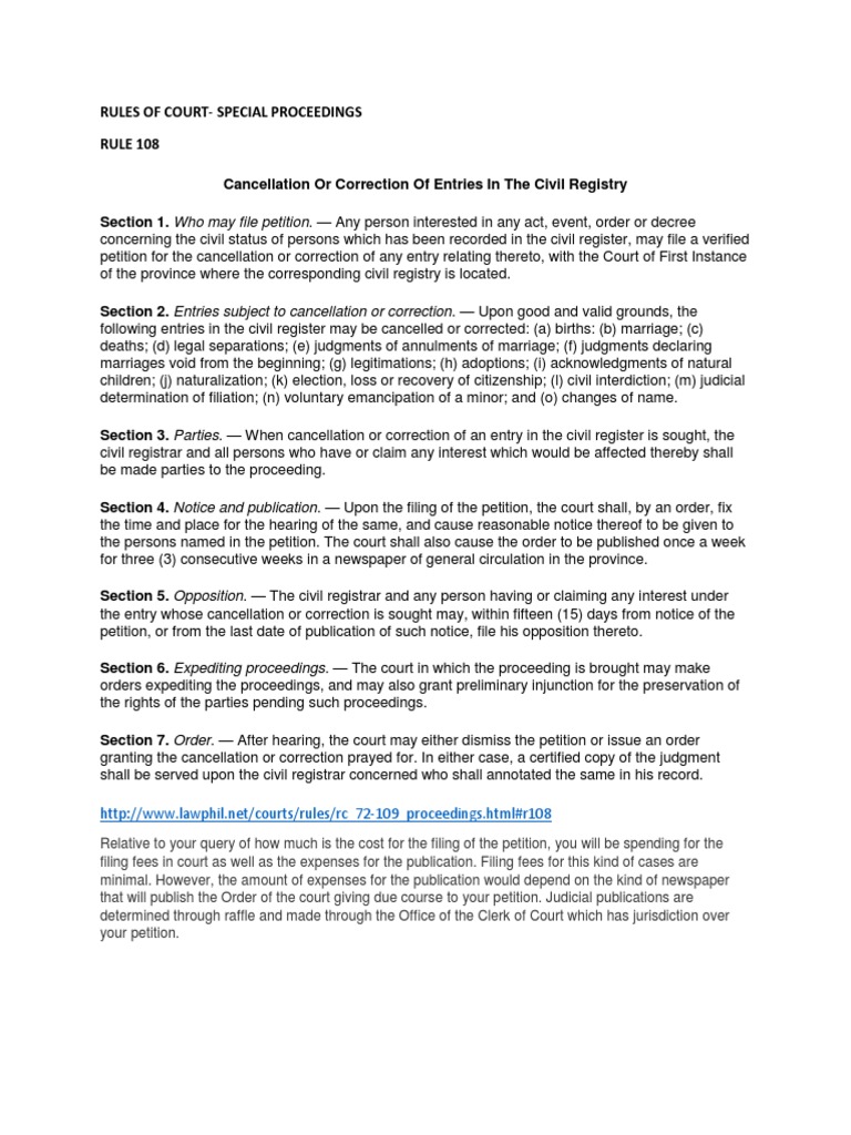 Rules Of Court Special Proceedings Rule 108 Judgment Law Judiciaries