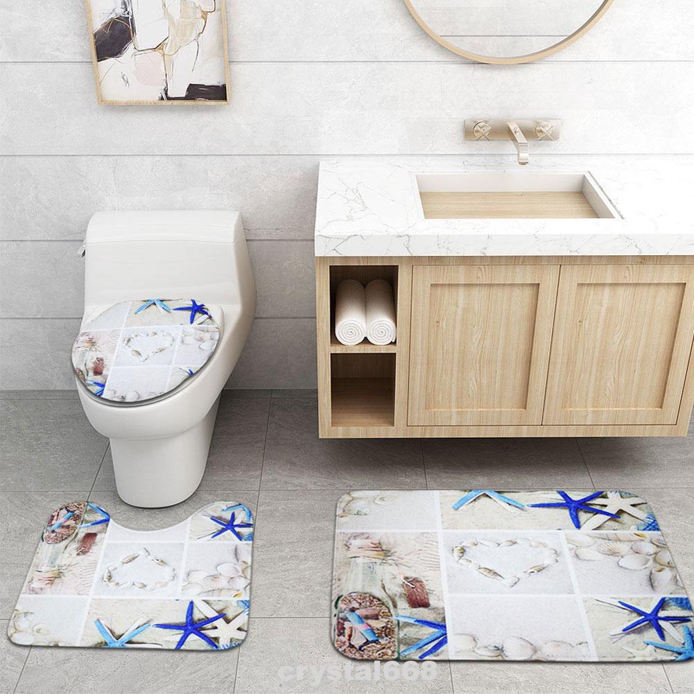 4pcs Removeable Bathroom Decor Mildew Proof Accessories 3d Printed Sea Shell Shower Curtain Set Shopee Philippines