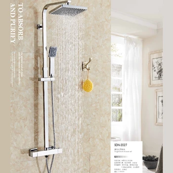Buy Bathroom Thermostatic Shower Sets Square Shower Arm Twin Head Set Thermostatic Chrome Shower Faucet Brass Thermostatic Mixer Online