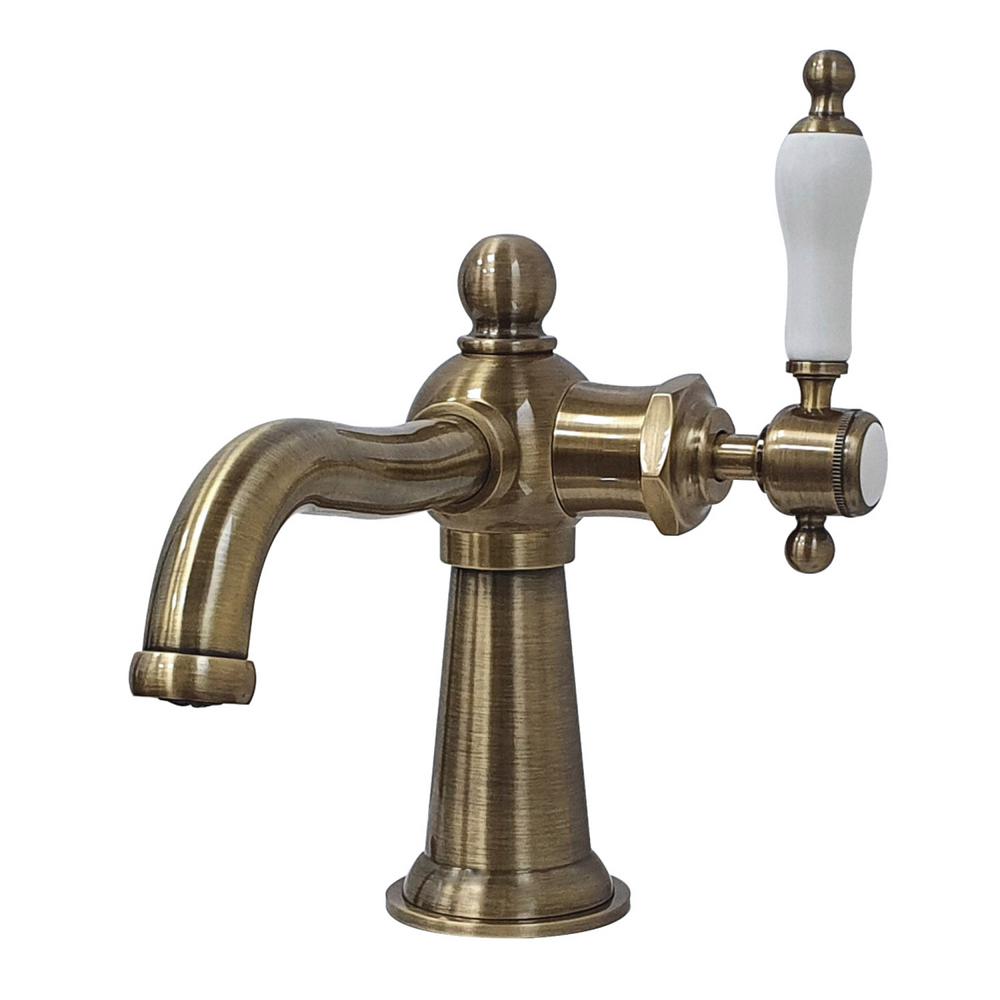 Single Hole Antique Brass Porcelain Handle Bathroom Faucets