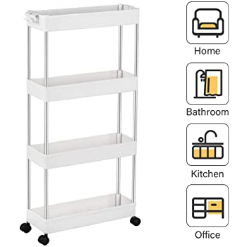 Amazon Com Bigzzia Utility Cart 4 Tier Slim Storage Cart Kitchen Bathroom Mobile Shelving With Moving Wheels Multifunction Organizer Trolley Mesh Basket Shelf For Office Library Narrow Places Home Kitchen