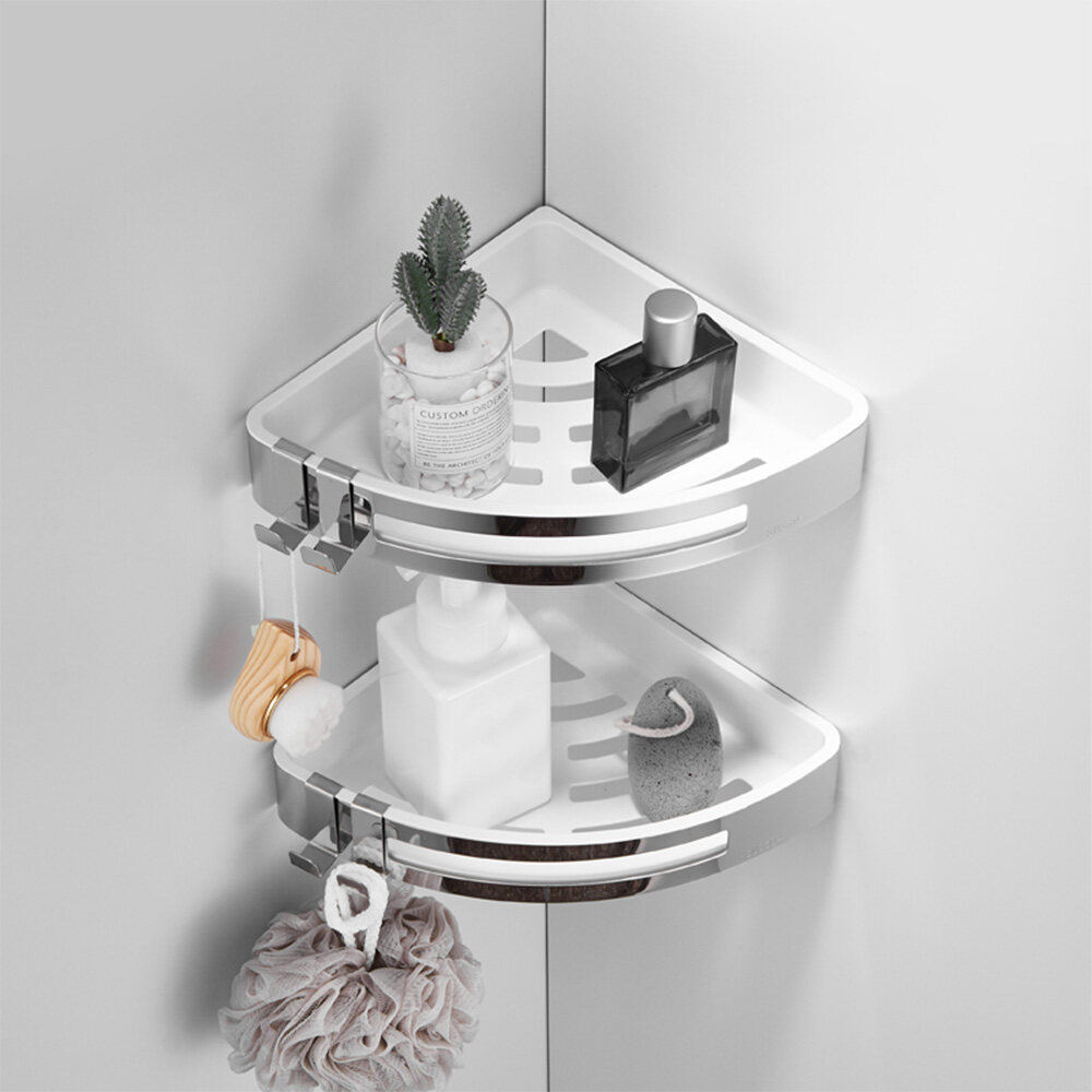 Convenient And Durable Stainless Steel Bathroom Shelves Wall Mounted Kitchen Organizer Stainless Steel Storage Corner Shelf No Punch Hook Bath Room Accessories Stainless Steel And Abs Wall Mounted Bath Rack Lazada