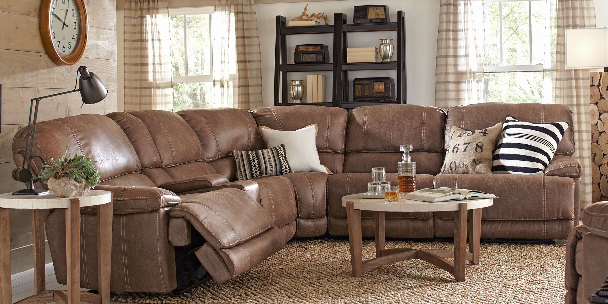 Offering The Best In Casual Contemporary Comfort The Stetson Ridge Sectional Is Packed With Features Des Family Room Sectional Rustic Room Living Room Designs